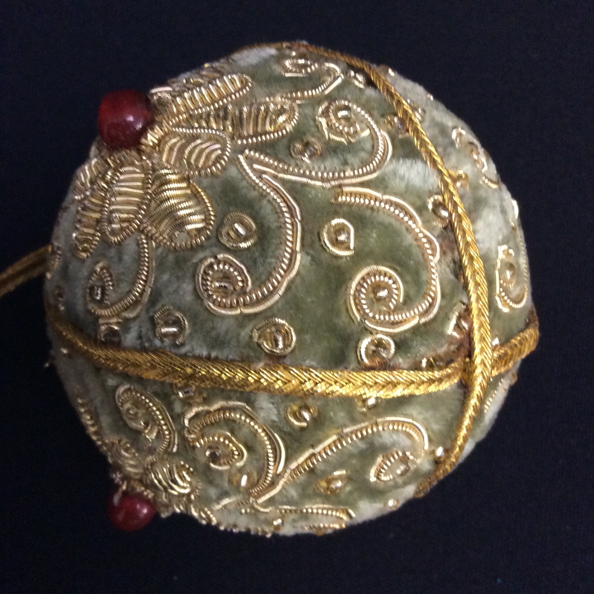 Edle Baumkugel aus Samt , reichlich verziert - grün