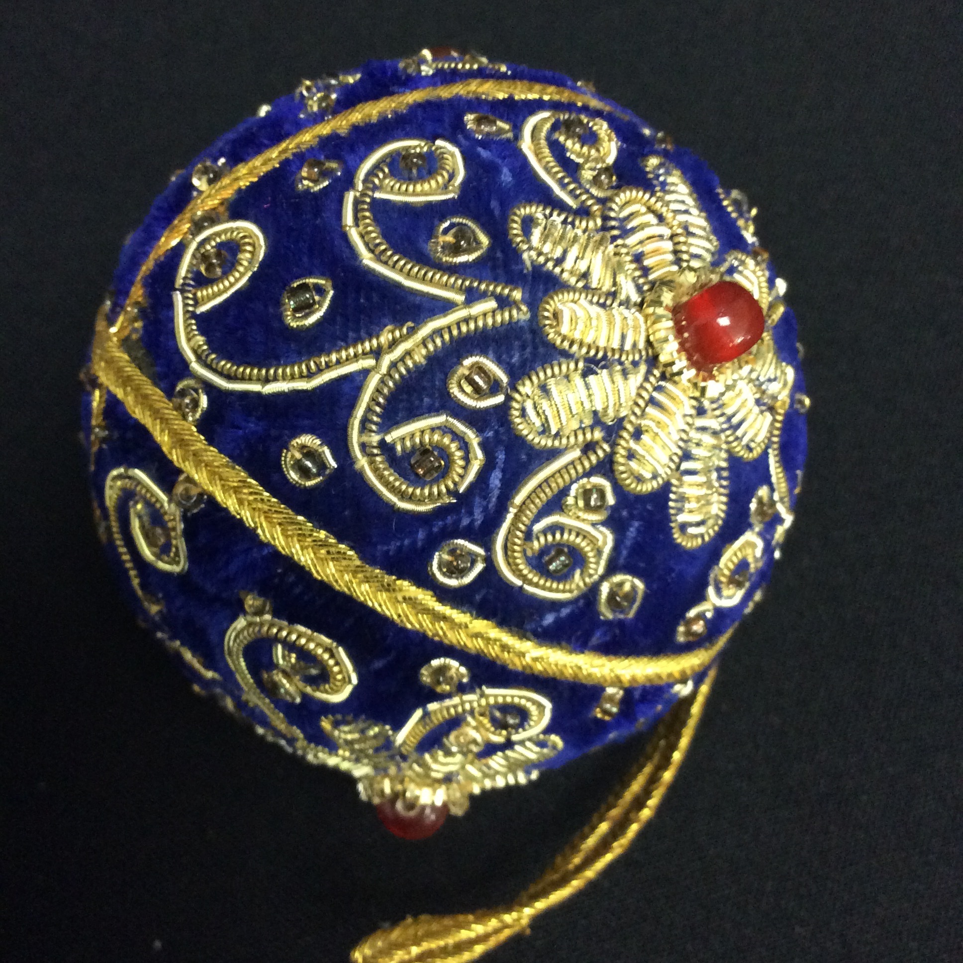 Edle Baumkugel aus Samt , reichlich verziert - blau