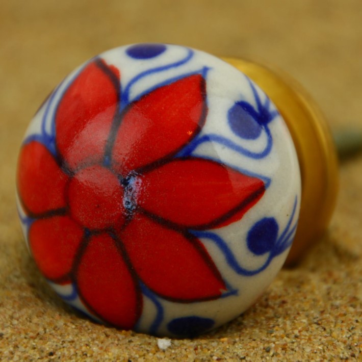 Keramik-Knauf rot-weiß Blume