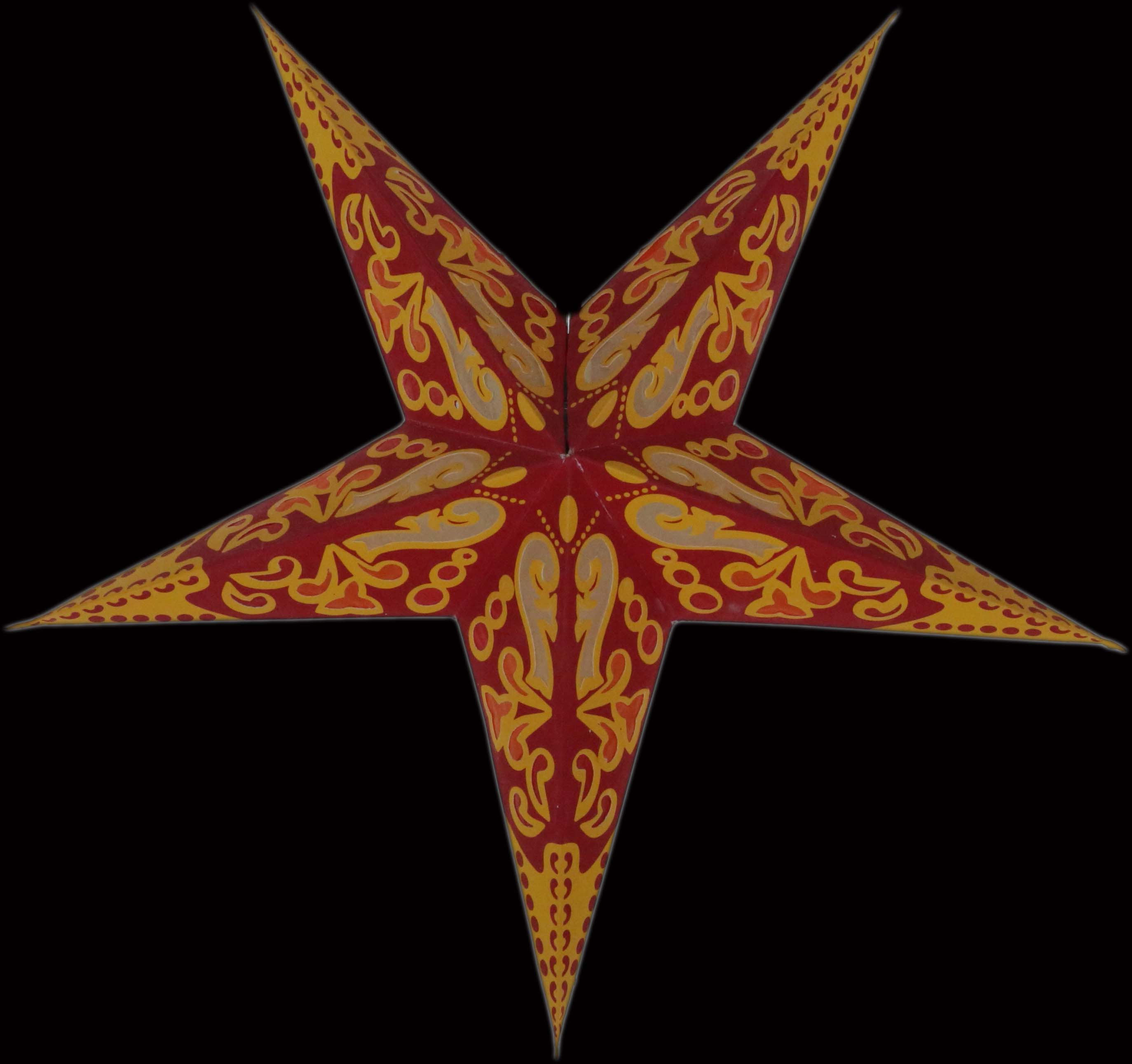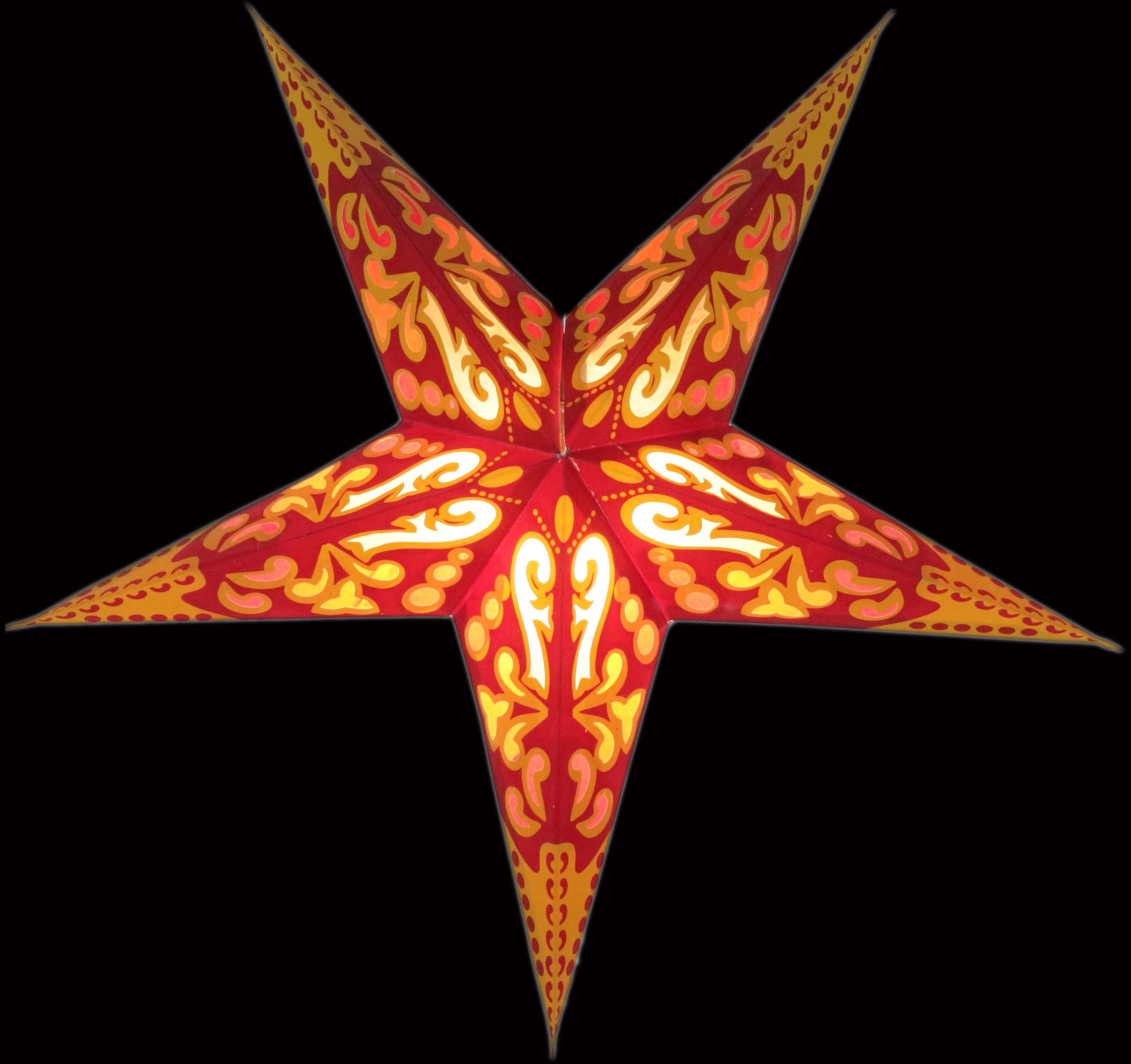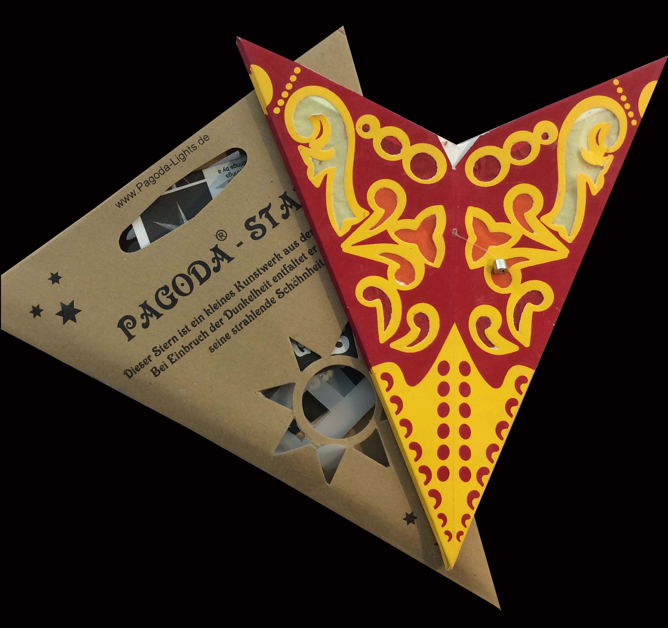 Original Pagoda Stern mit 5 Zacken aus festem Papier. Das Muster wurde in sorgfältiger Handarbeit ausgestanzt und hinterklebt.
