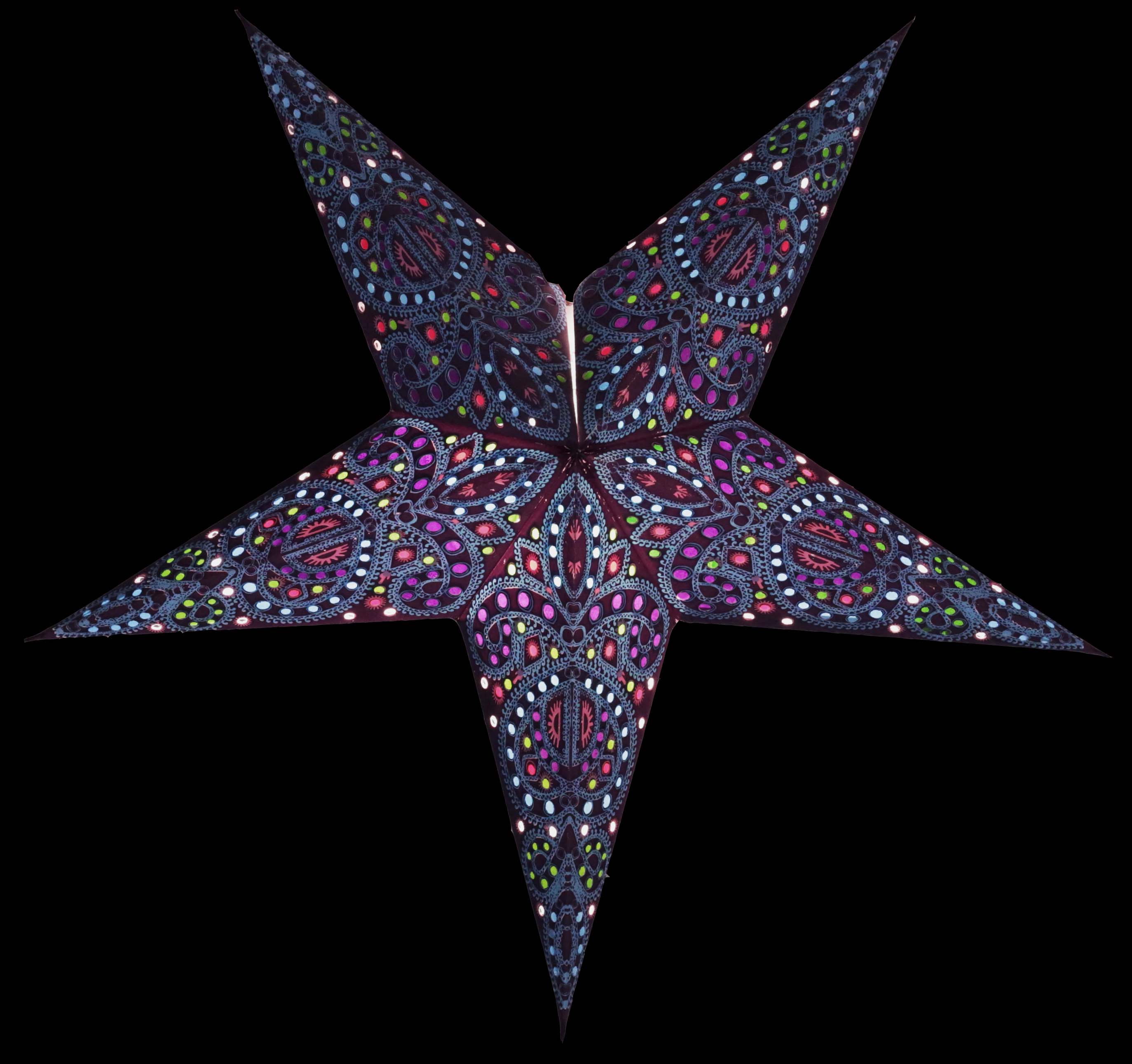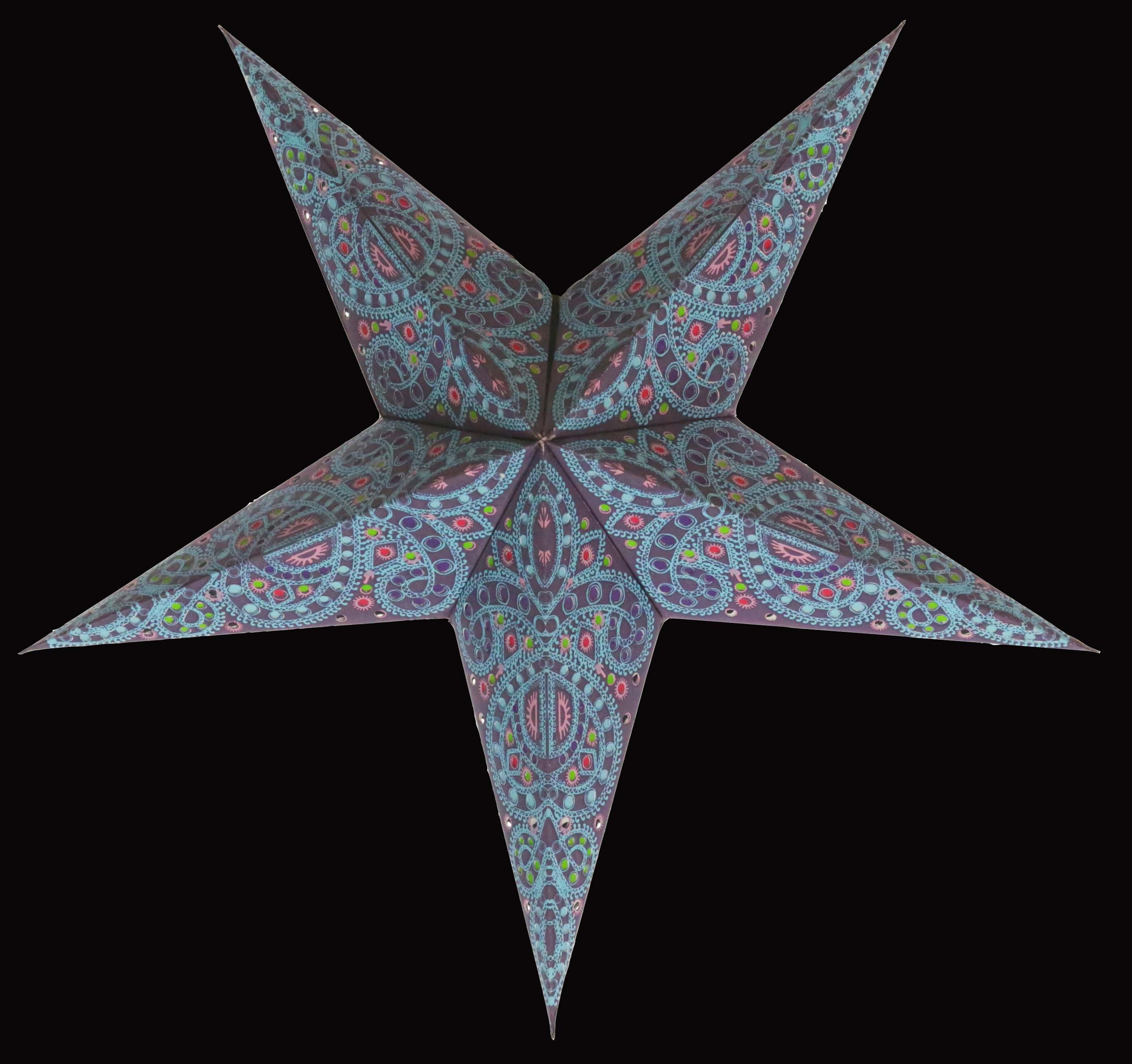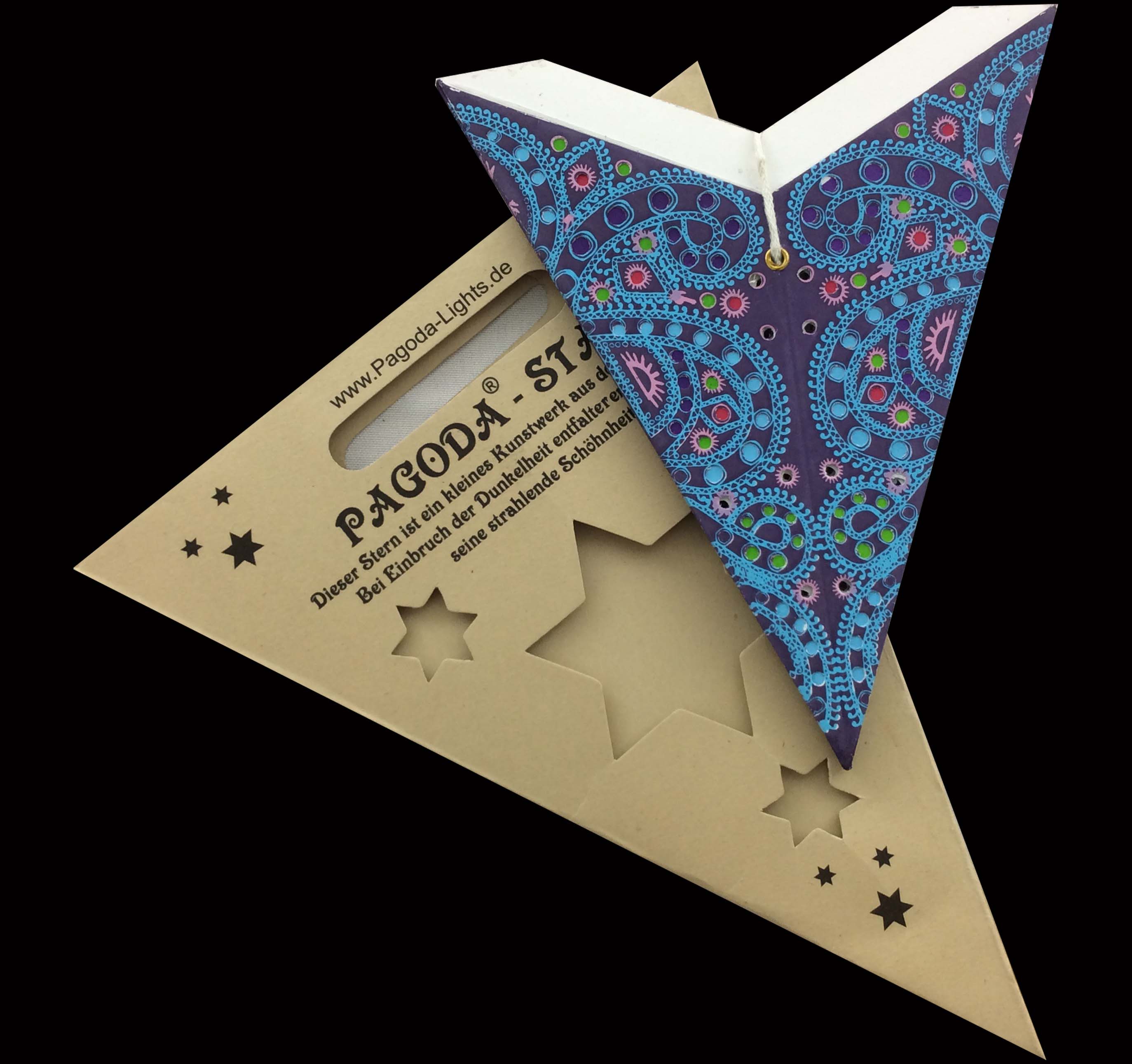 Original Pagoda Stern mit 5 Zacken aus festem Papier. Das Muster wurde in sorgfältiger Handarbeit ausgestanzt und hinterklebt.