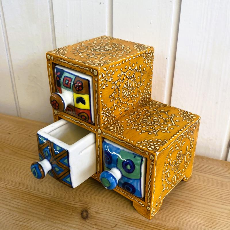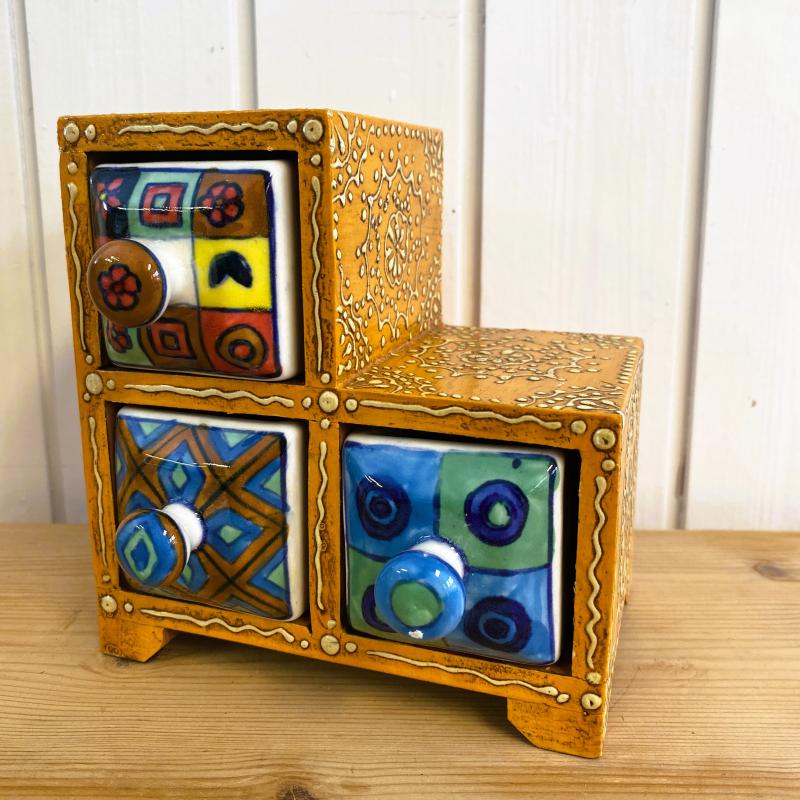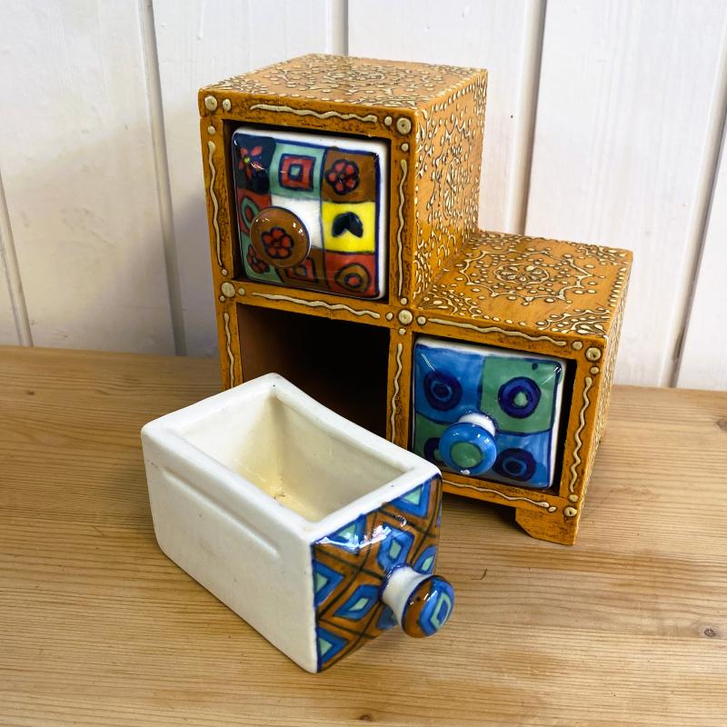DEKO Minischränkchen handbemalt- 3 bunte Keramikschubladen für Gewürze/Schmuck /Ausrichtung rechts