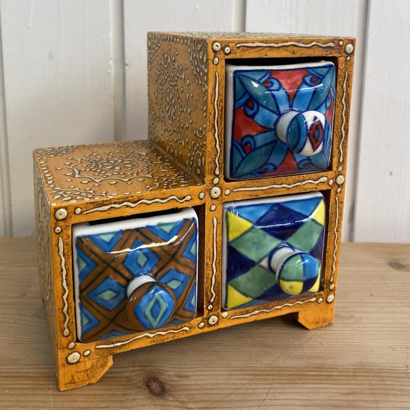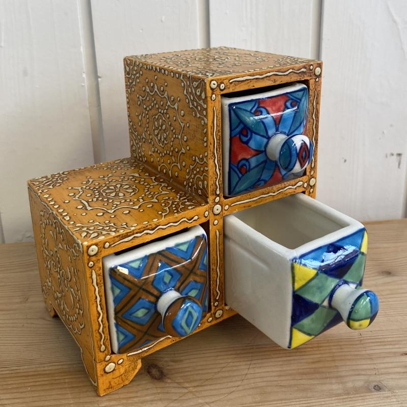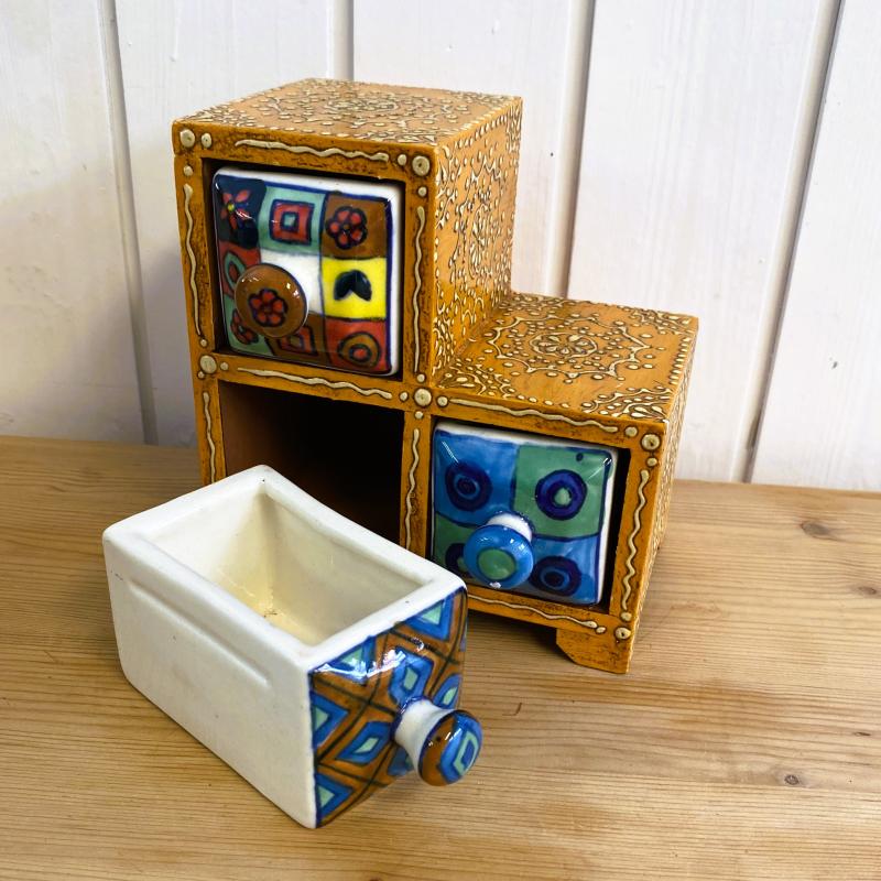 DEKO Minischränkchen handbemalt- 3 bunte Keramikschubladen für Gewürze/Schmuck-Ausrichtung links