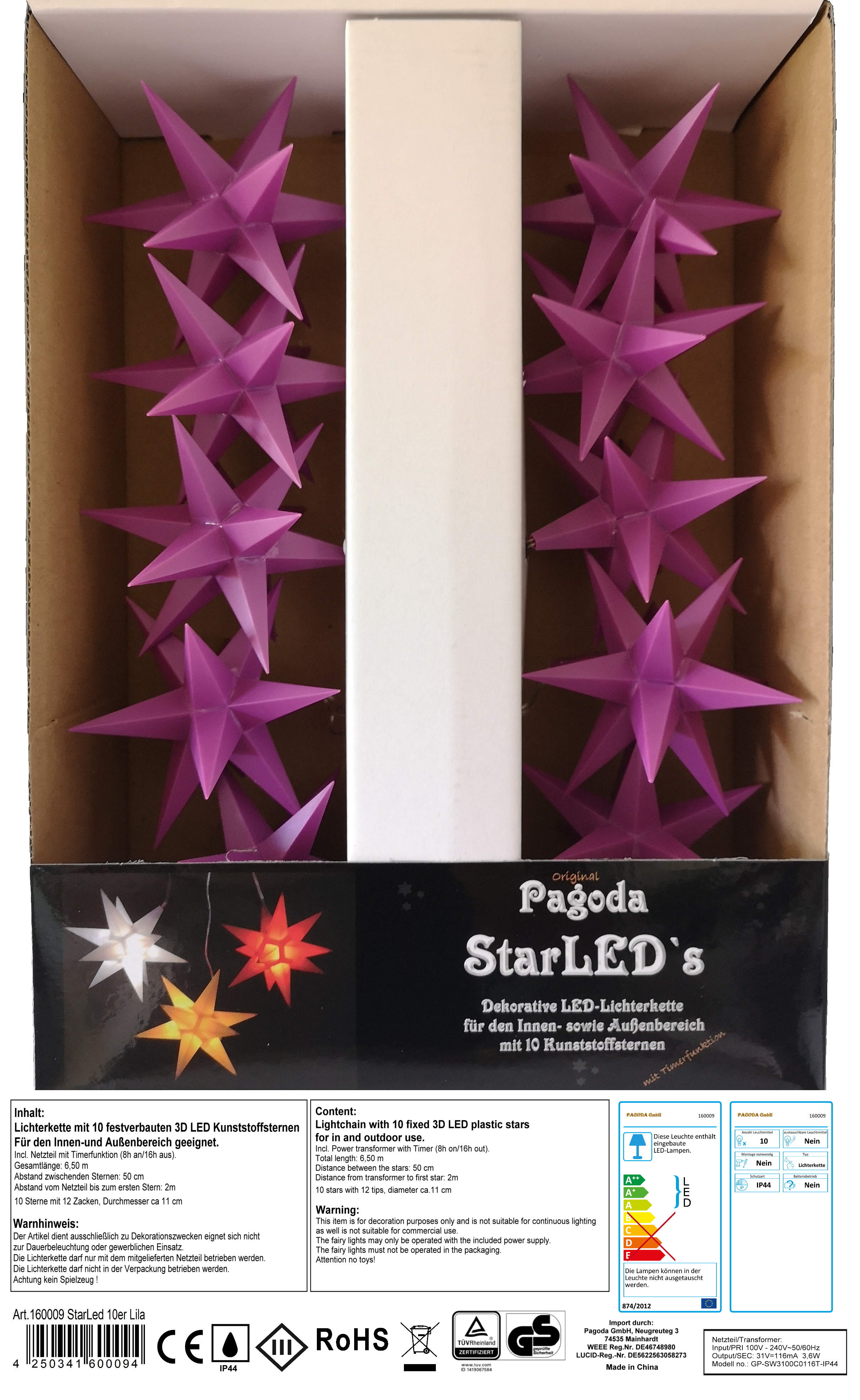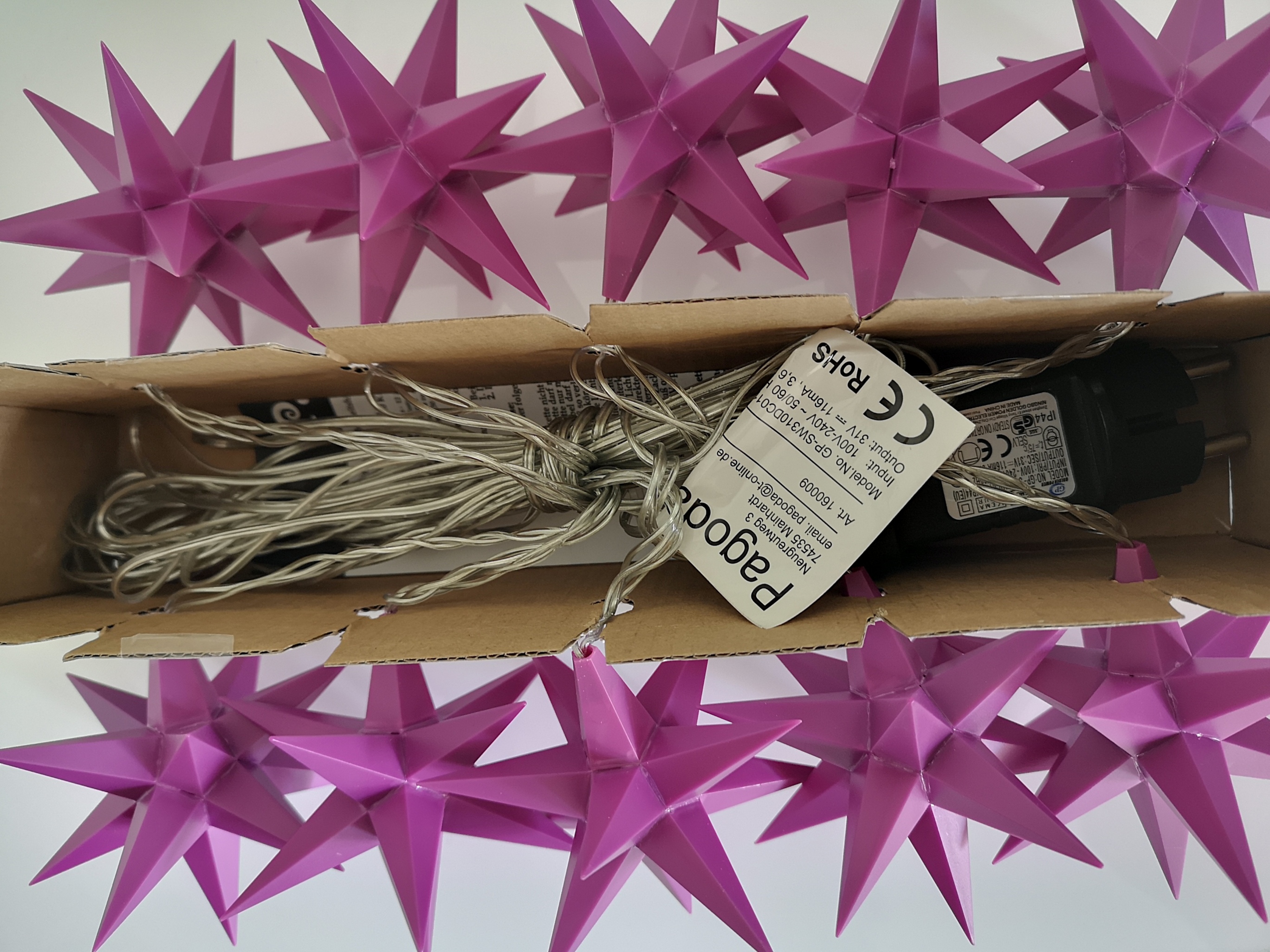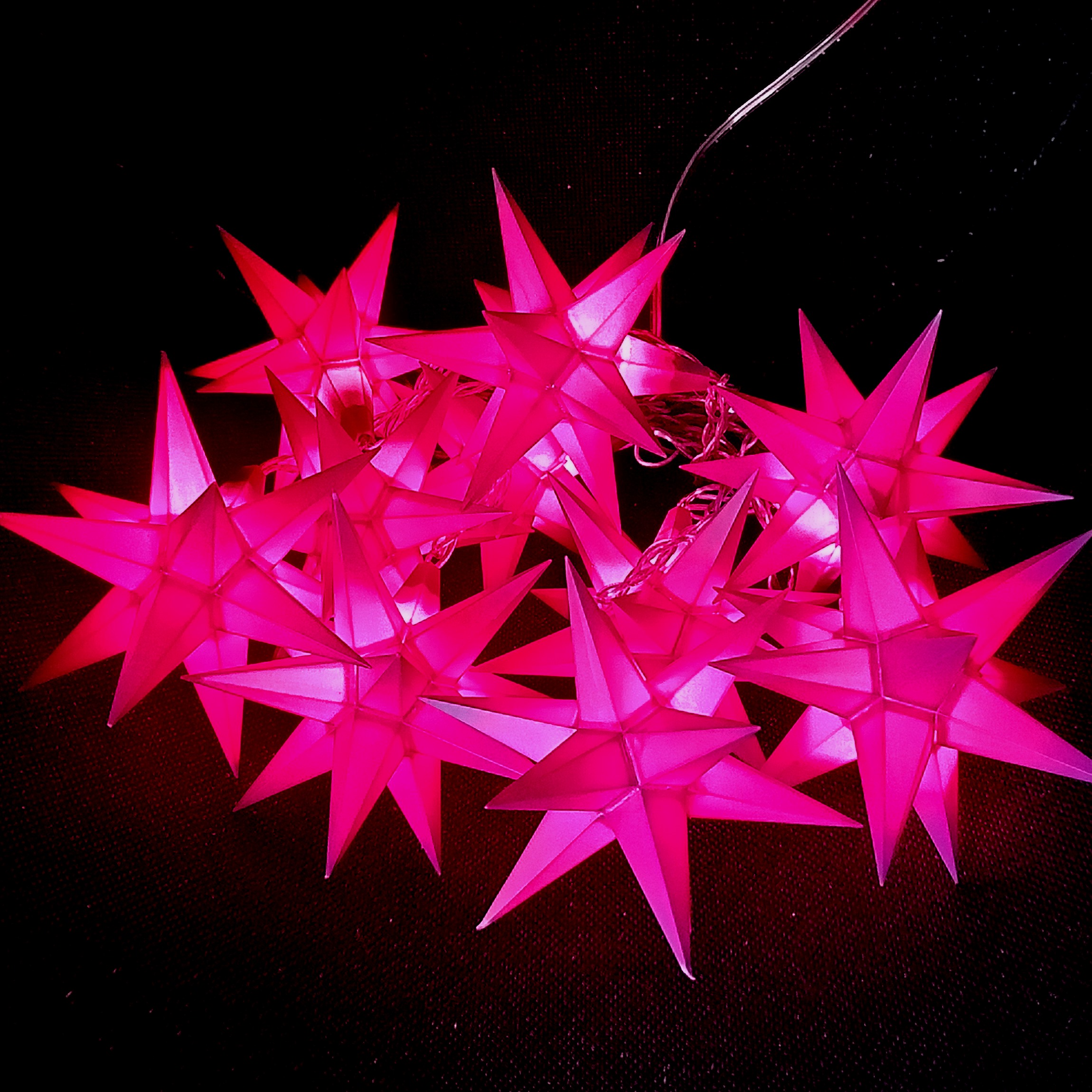 10 Mini Sternekette aus Kunstoff, 12 Zacken, Durchmesser ca. 9 cm, incl. Adapter, mit Timerfunktion