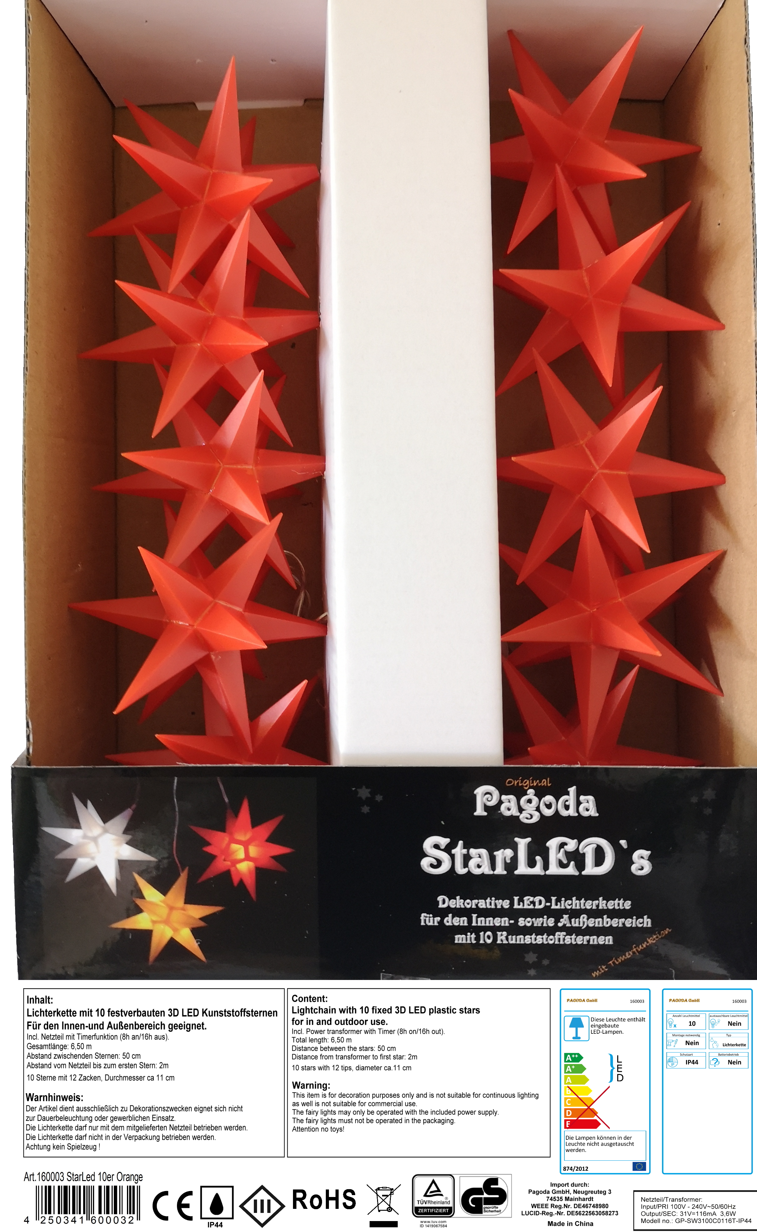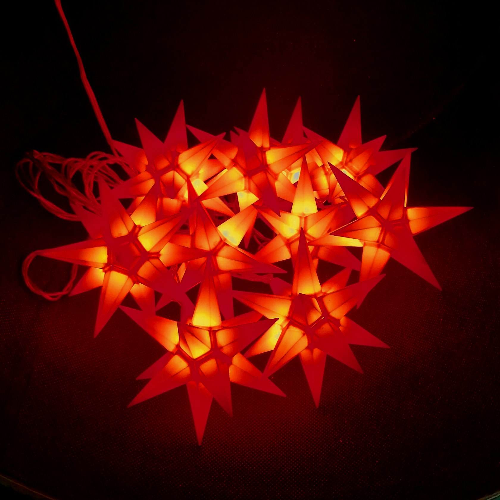 10 Mini Sternekette aus Kunstoff, 12 Zacken, Durchmesser ca. 9 cm, incl. Adapter, mit Timerfunktion