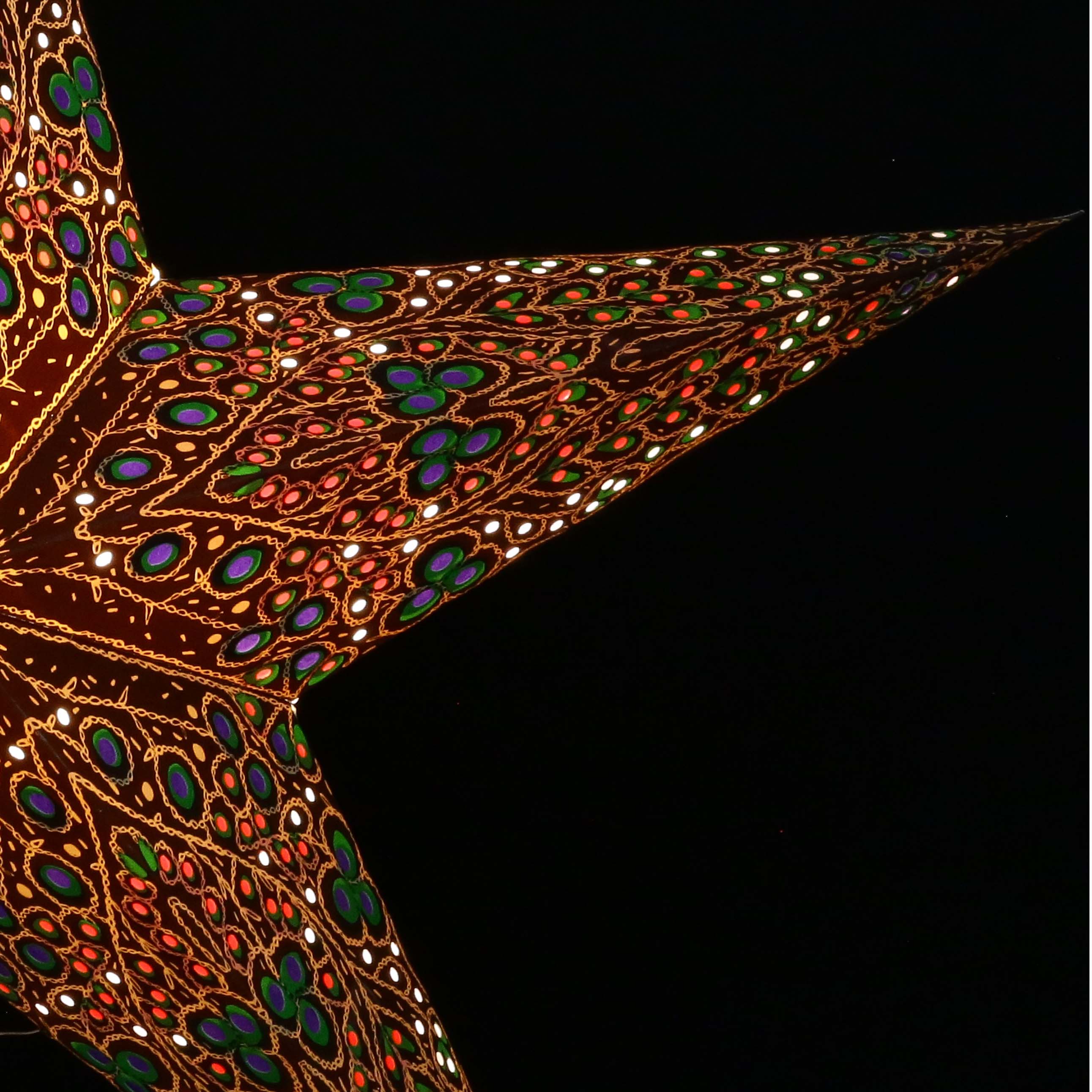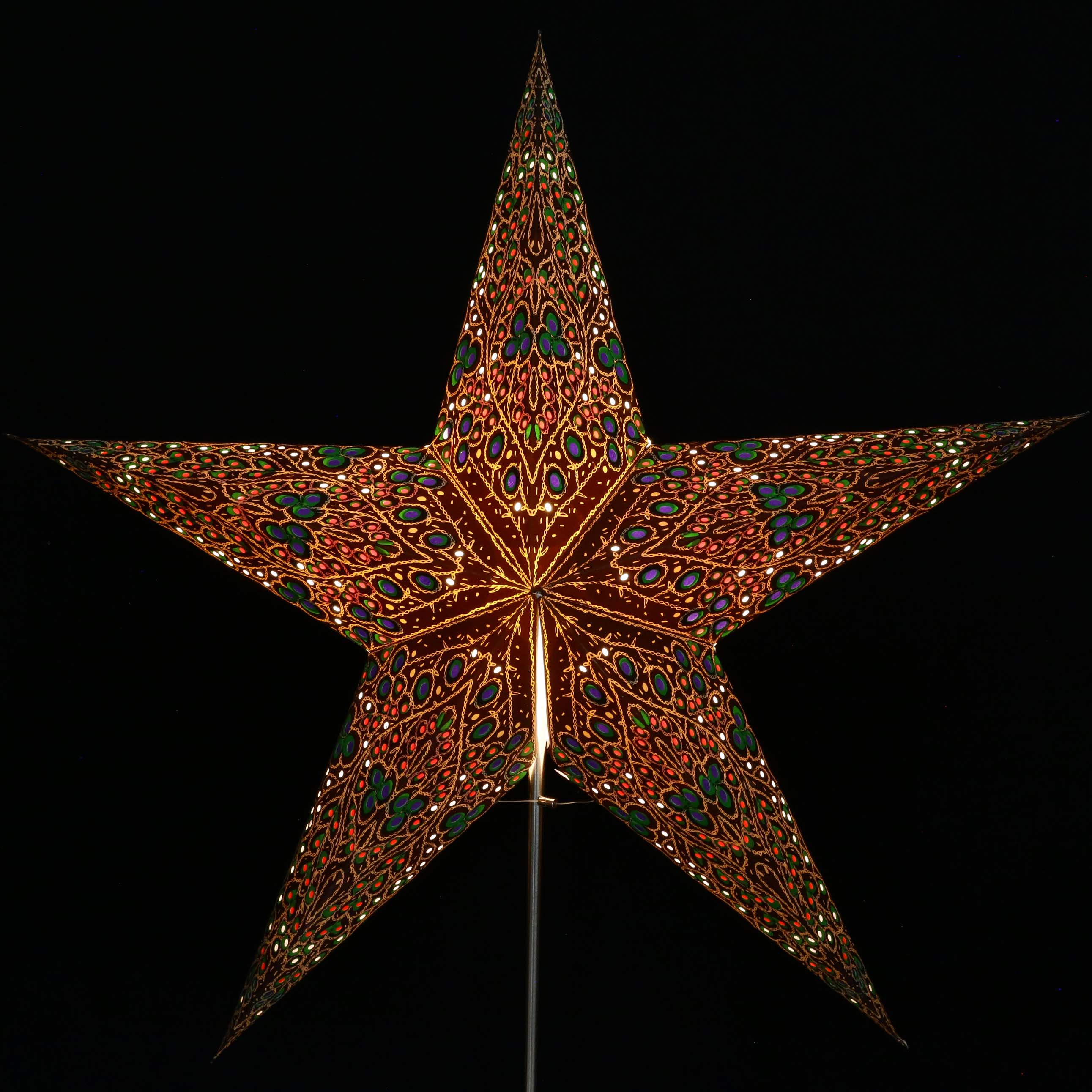 Preview: Peacock braun - Faltbarer Leuchtstern, Weihnachtsstern aus Papier mit 5 Zacken, 60 cm
