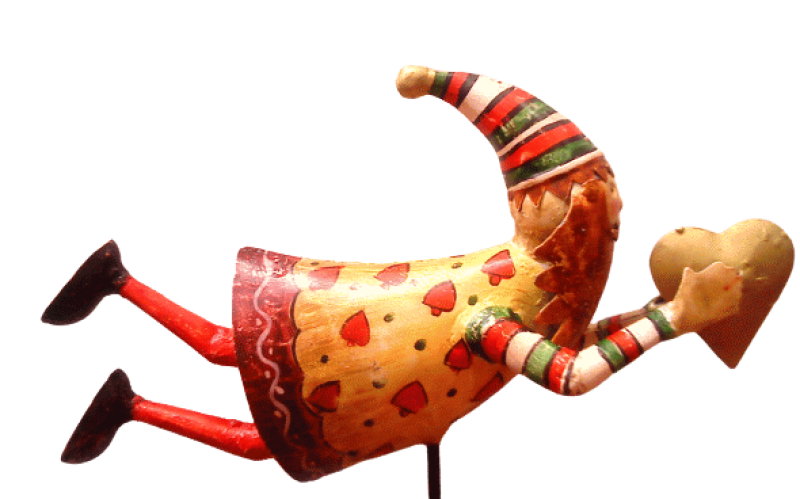 Gartenstecker Fliegender Nikolaus mit Herz aus bemaltem Blech