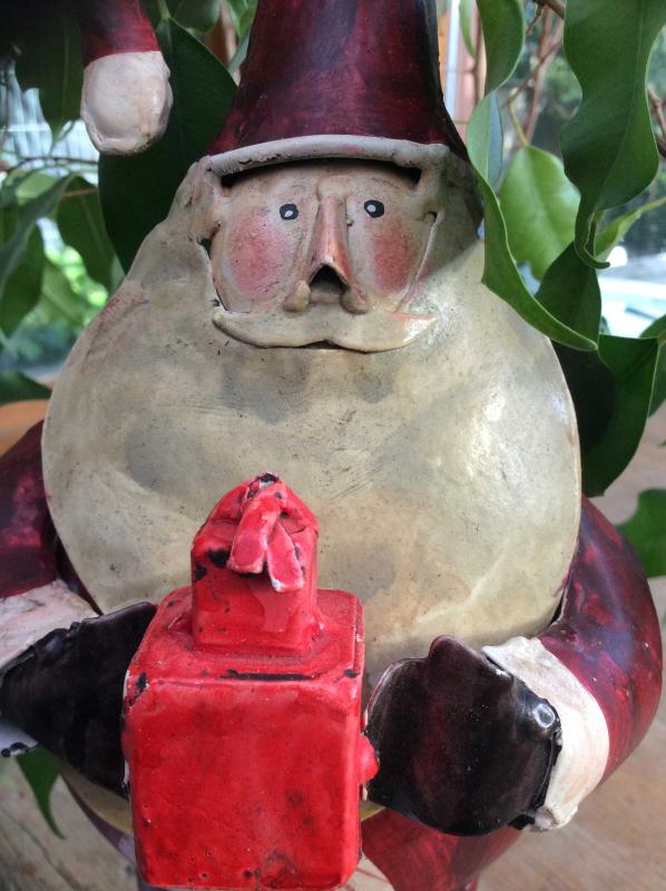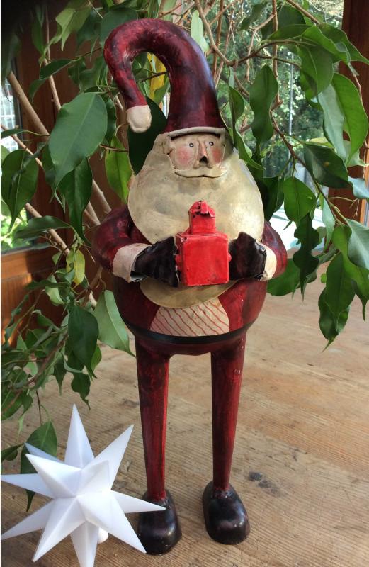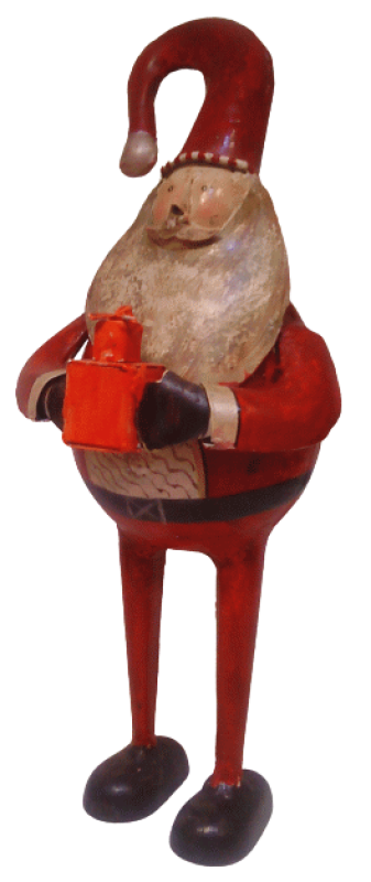 Santa Claus mit Geschenk aus hand bemaltem Blech