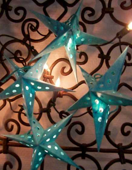 Mobile Preview: Mini stars batik turquoise, SET of 10 pieces